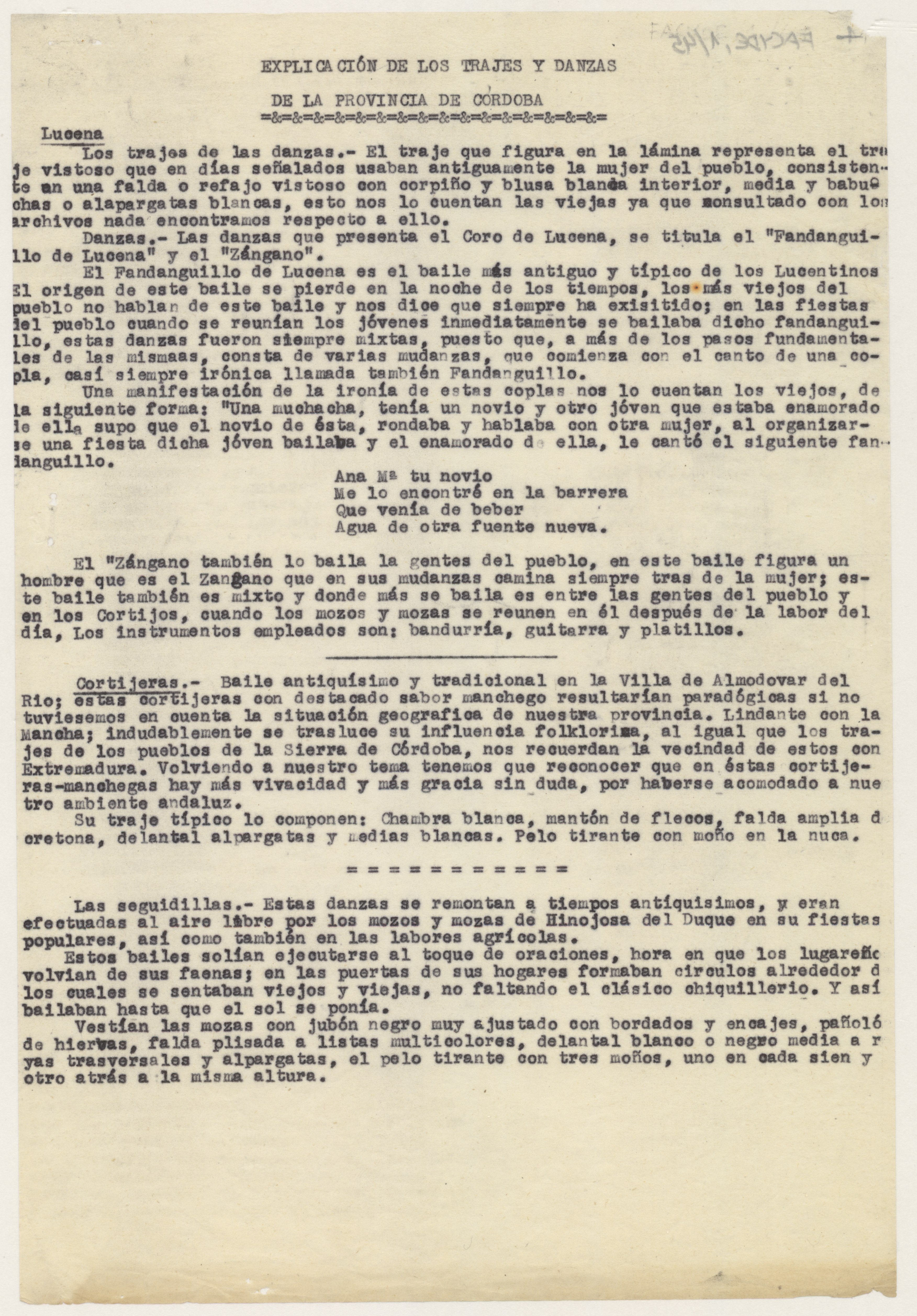Informe explicativo de los trajes y danzas de la provincia de Ciudad Real.