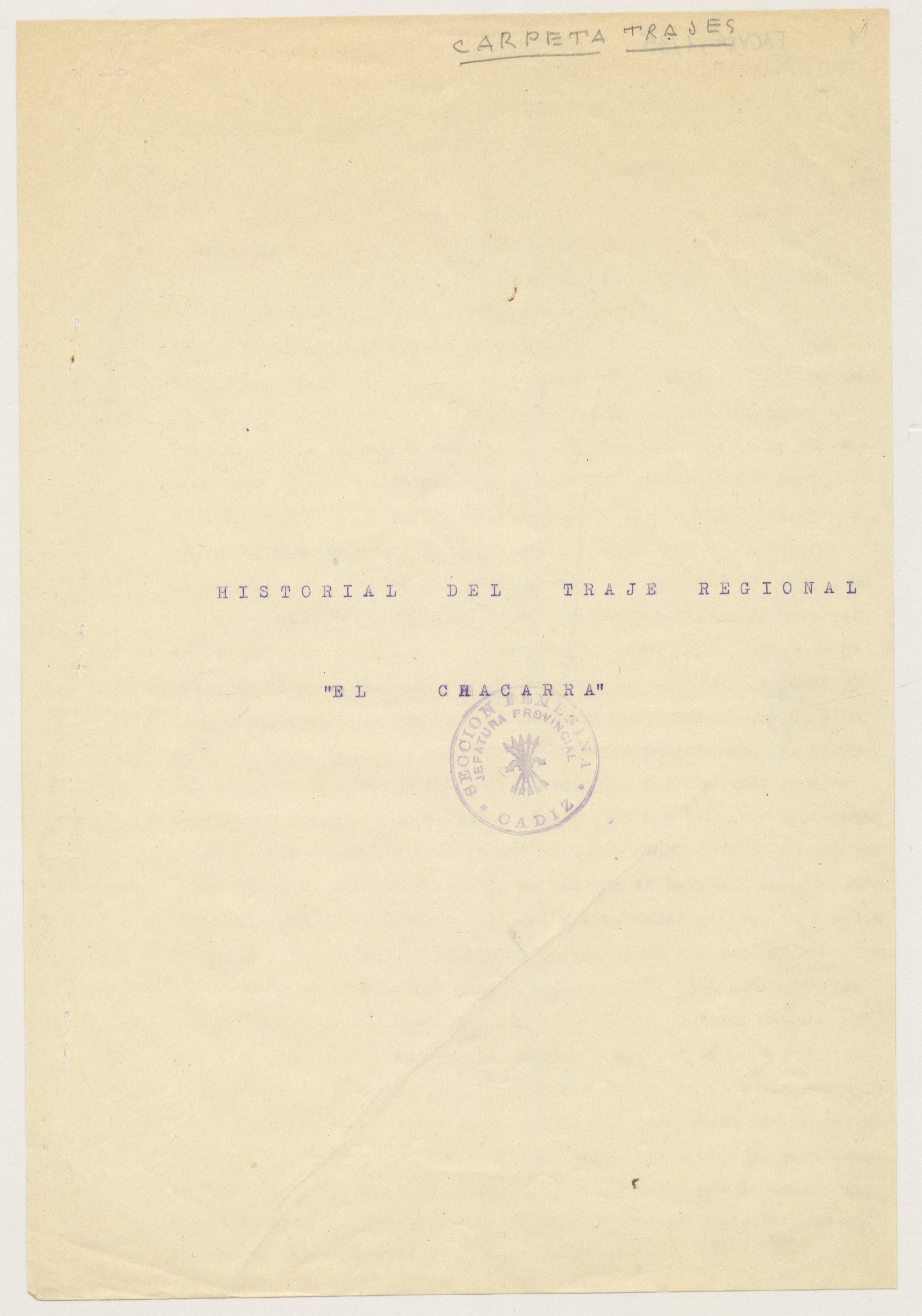 Informe sobre el traje típico regional de Cádiz denominado Cobijar utilizado para el baile El Chacarrá.