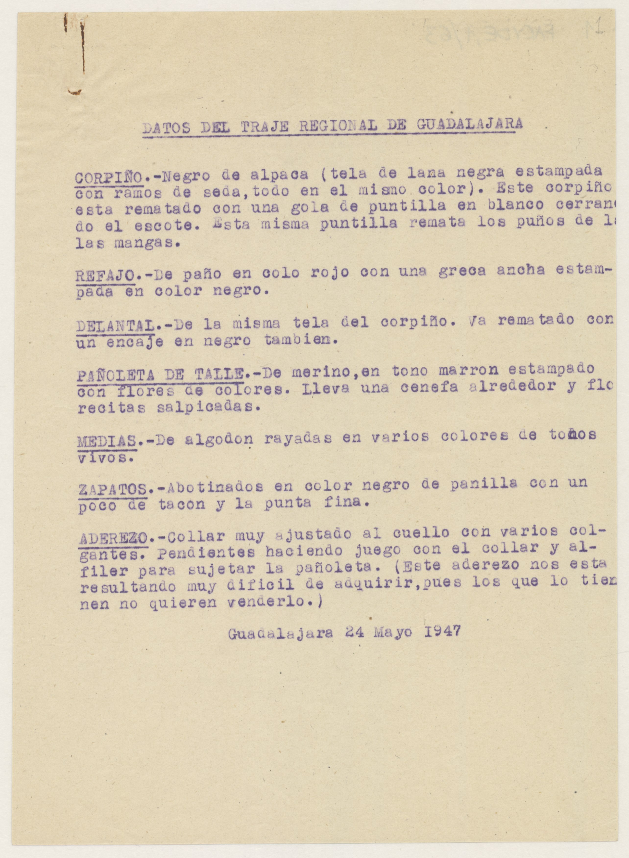 Informe con la descripción del traje regional de Guadalajara.