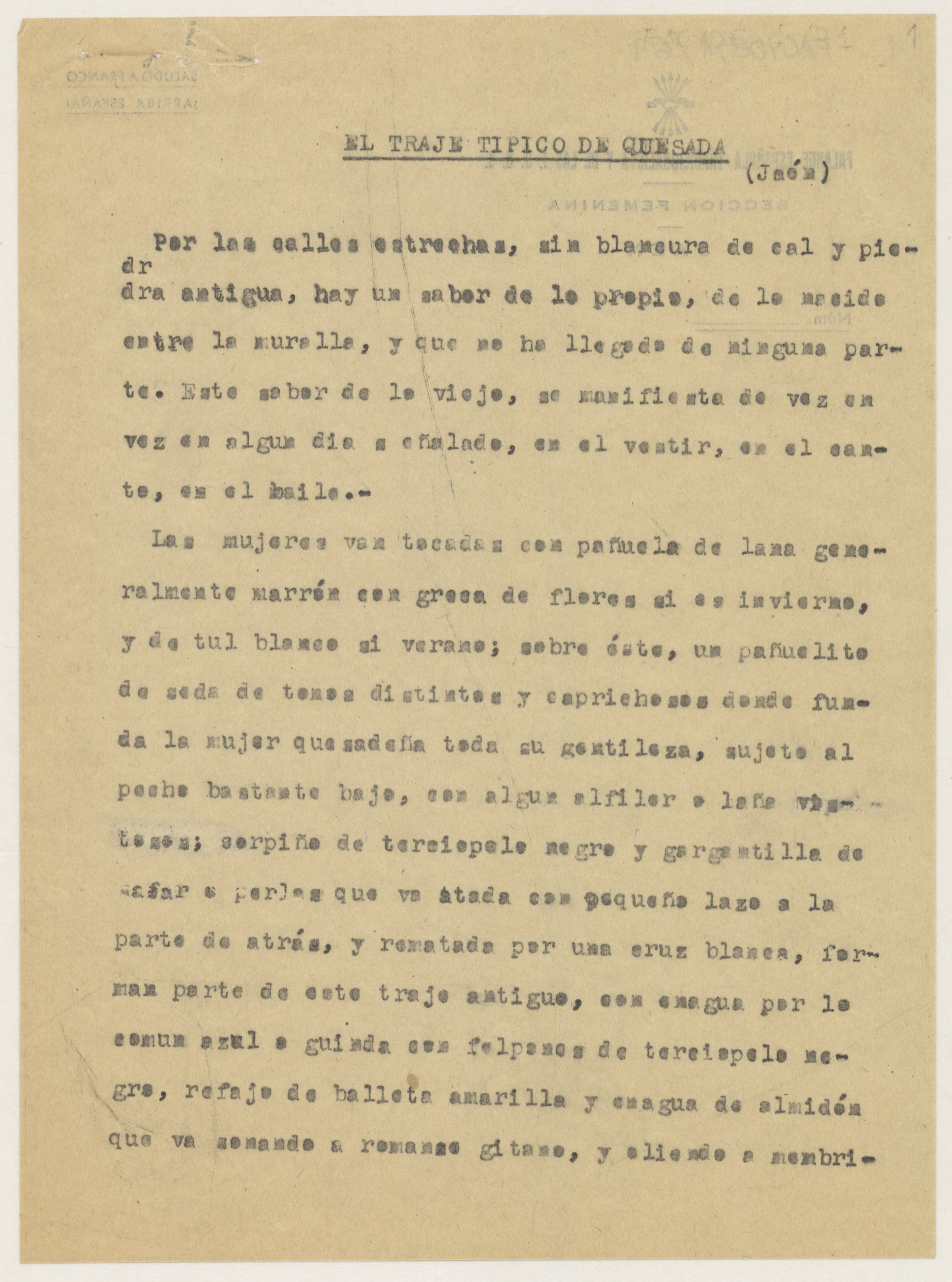 Informe del traje regional de Jaén.