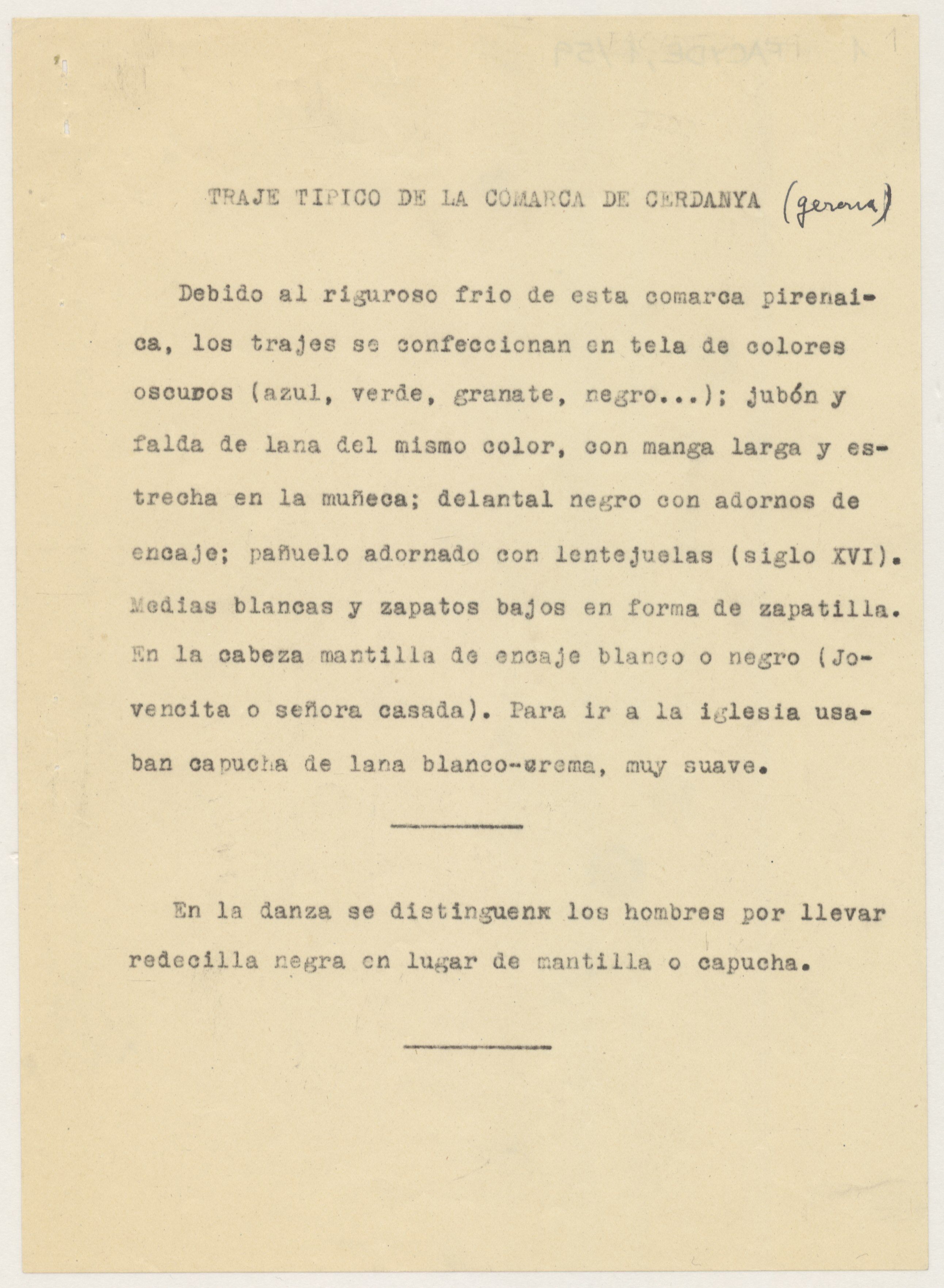 Informe sobre el traje típico regional de la comarca de Cerdanya.