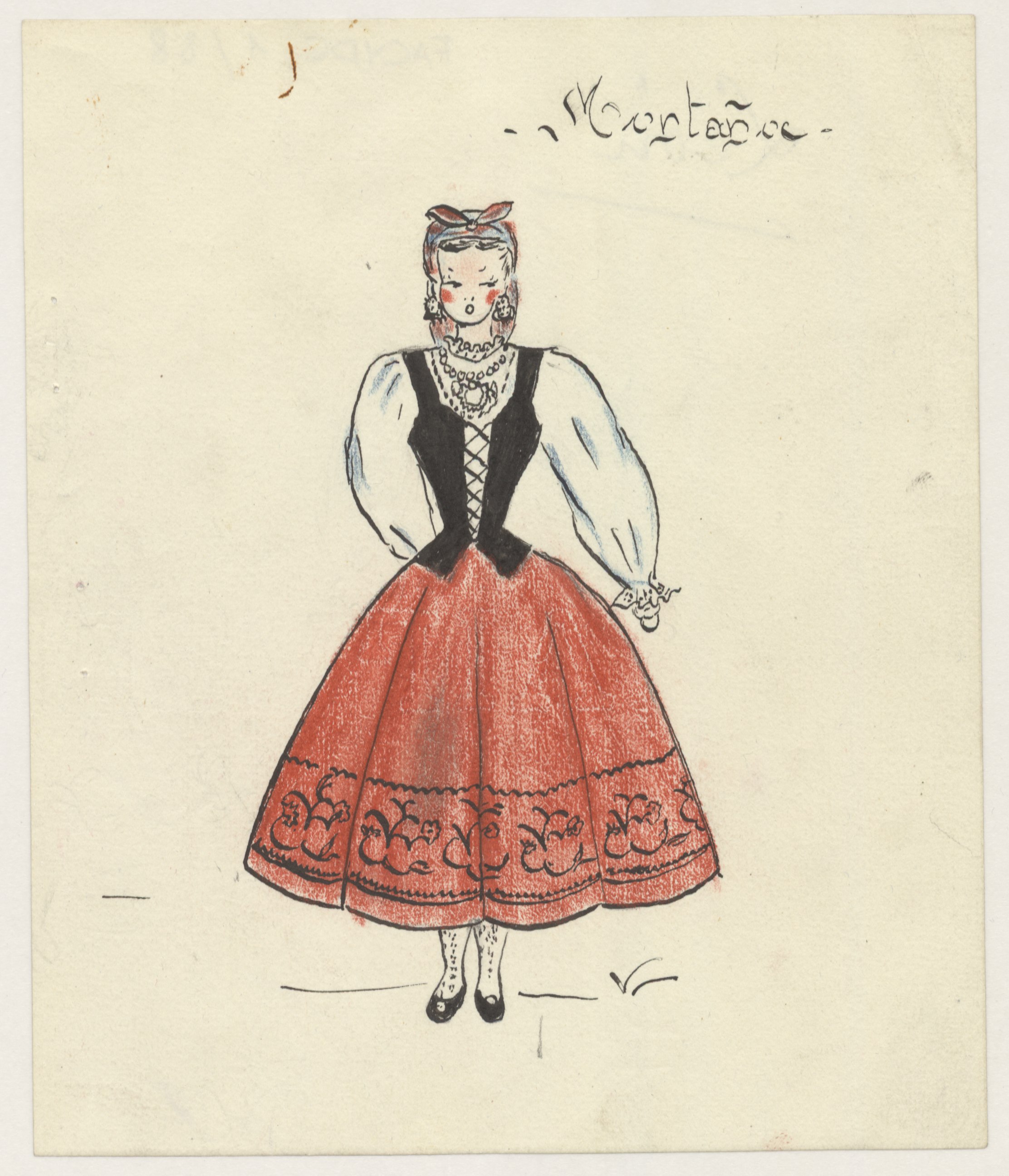 Dibujo del traje típico de mujer de Ponferrada.