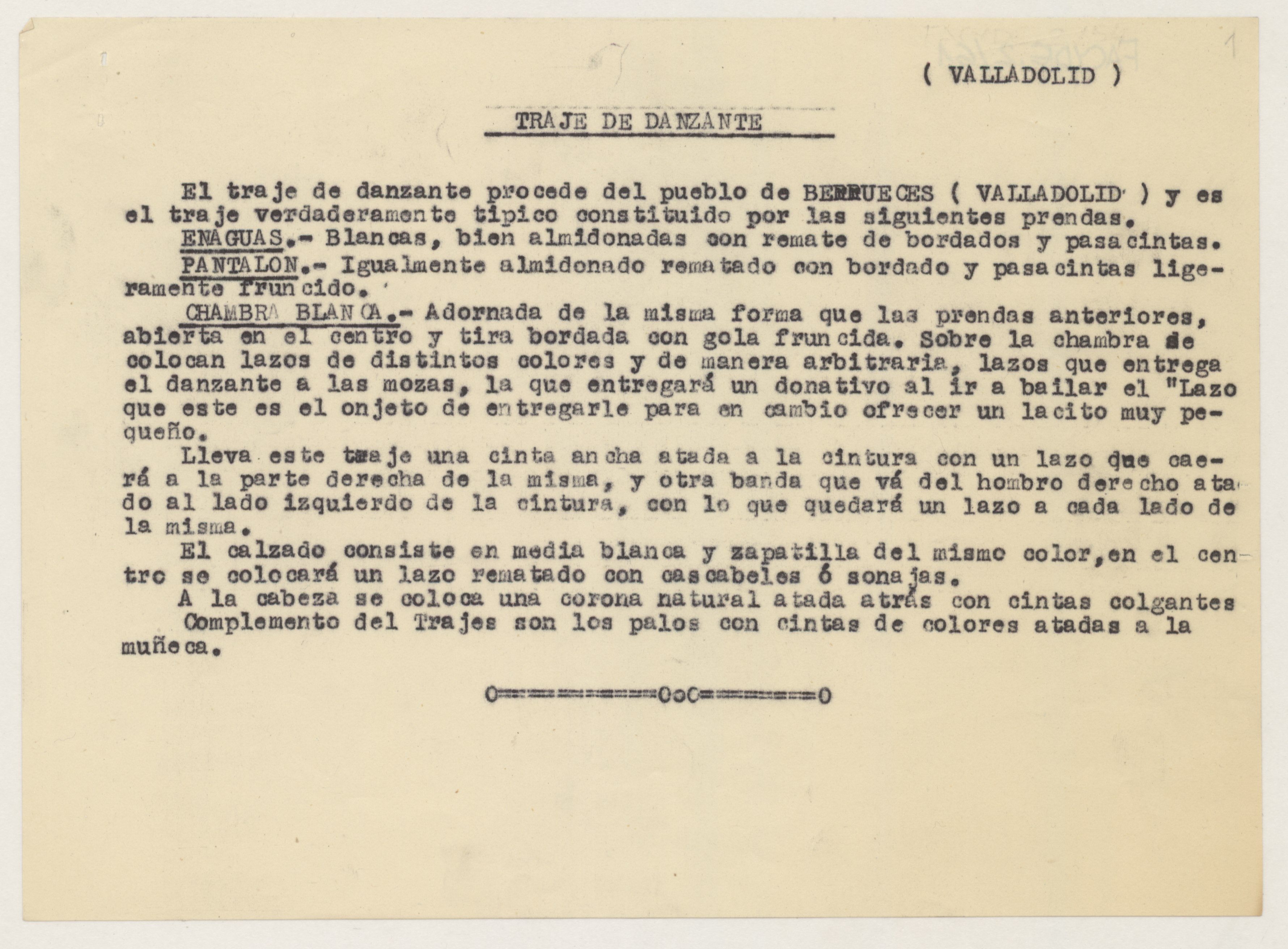 Informe sobre el traje típico de festividades religiosas de Valladolid.