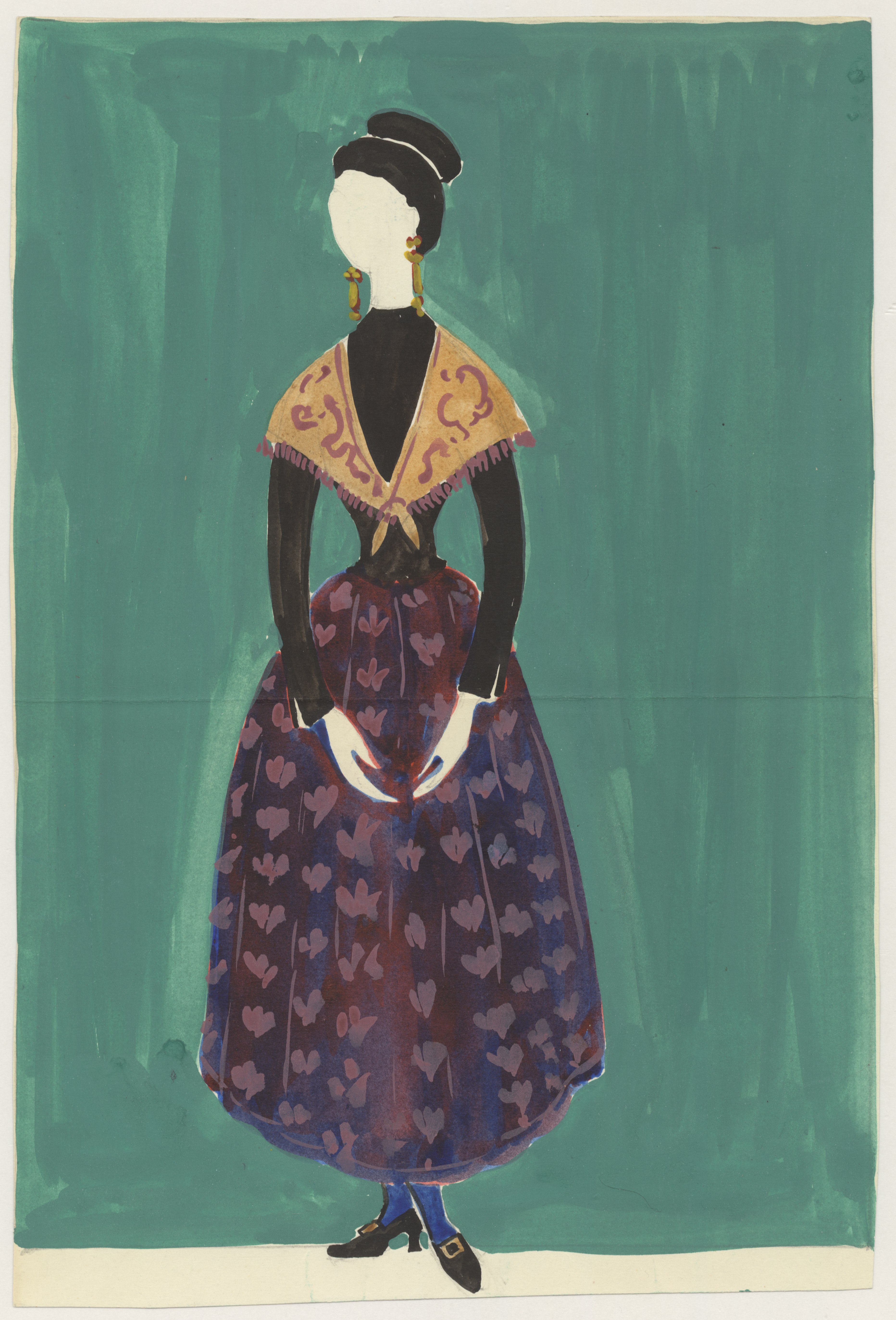 Dibujo de traje típico de mujer de la provincia de Vizcaya.