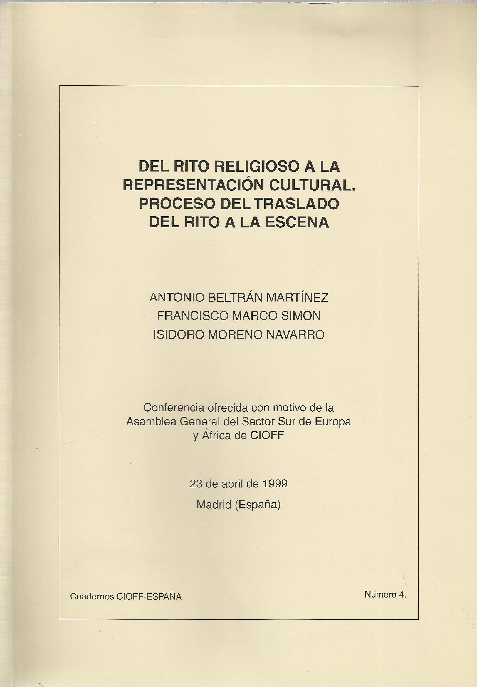 Del rito religioso a la representación cultural. Proceso del traslado del rito a la escena.