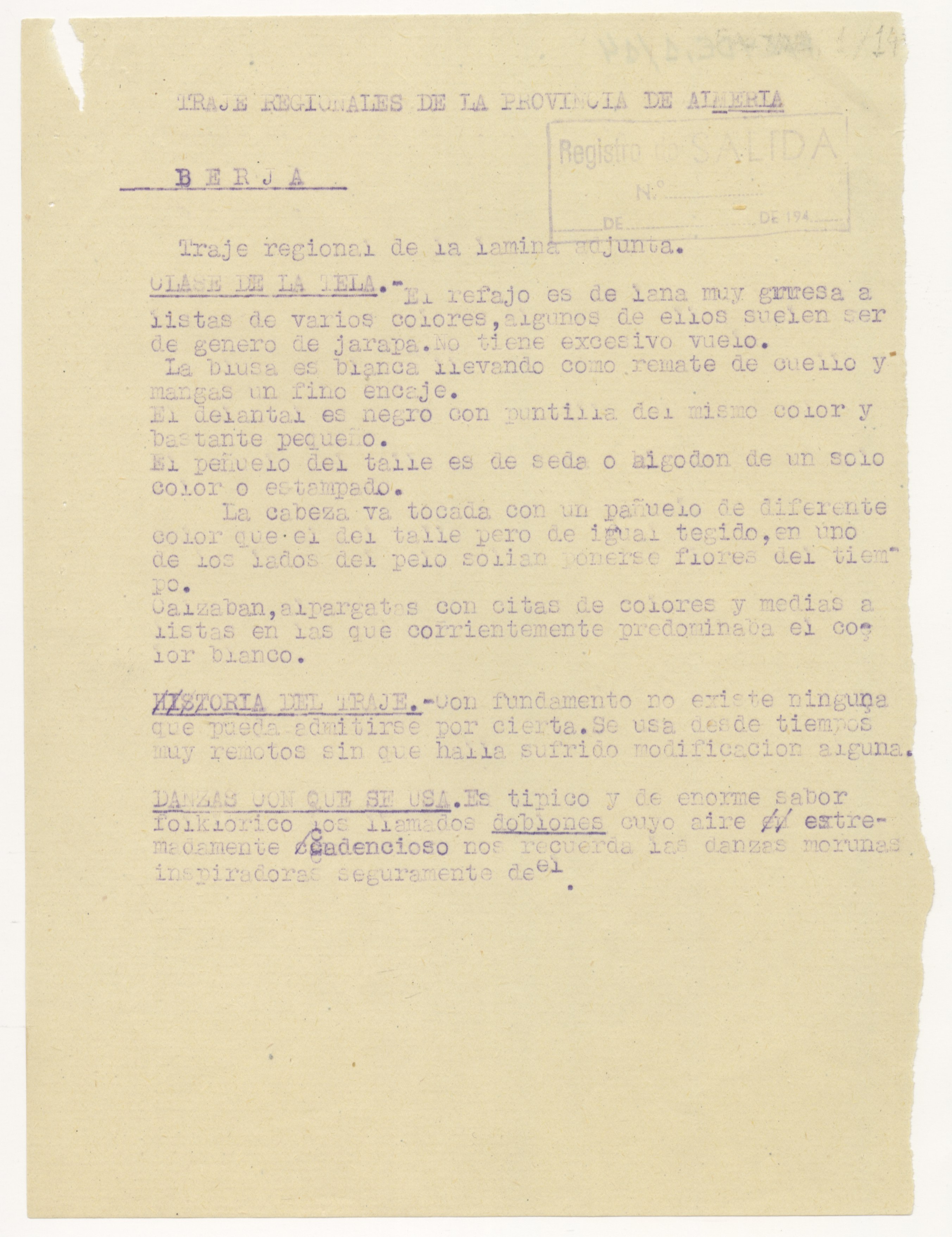 Informe sobre el traje típico regional de Berja.