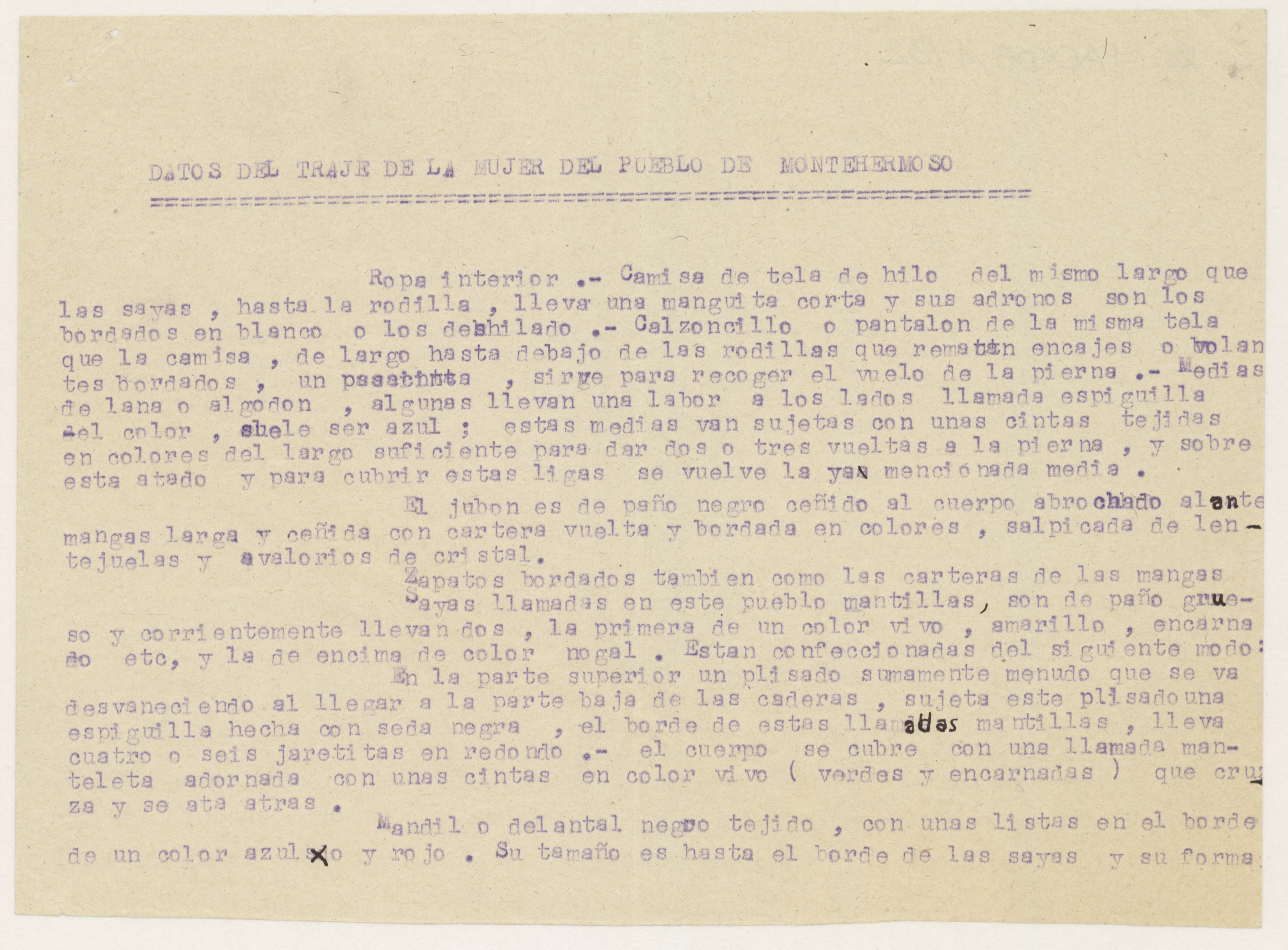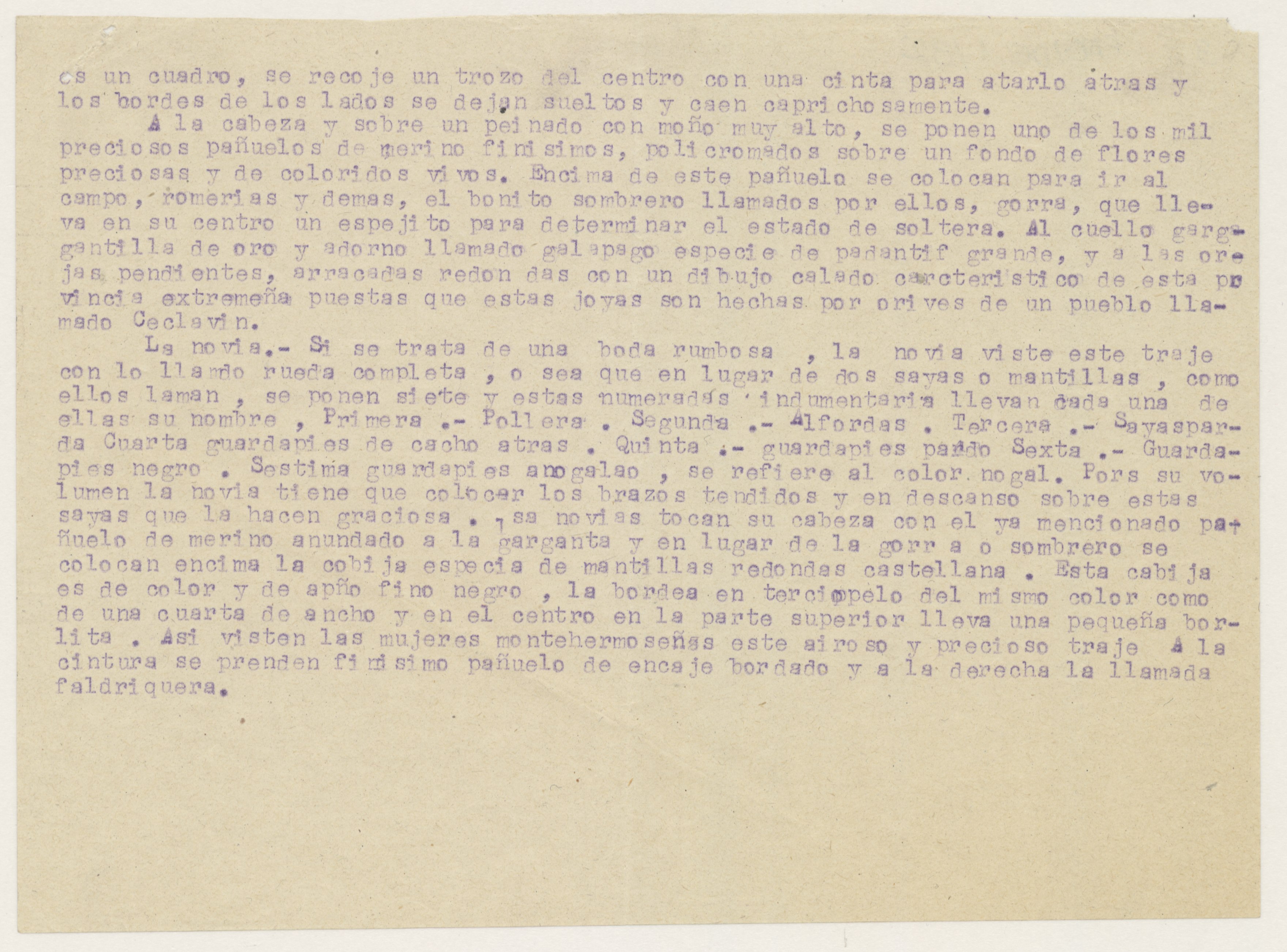 Informe sobre el traje típico de mujer de Montehermoso.