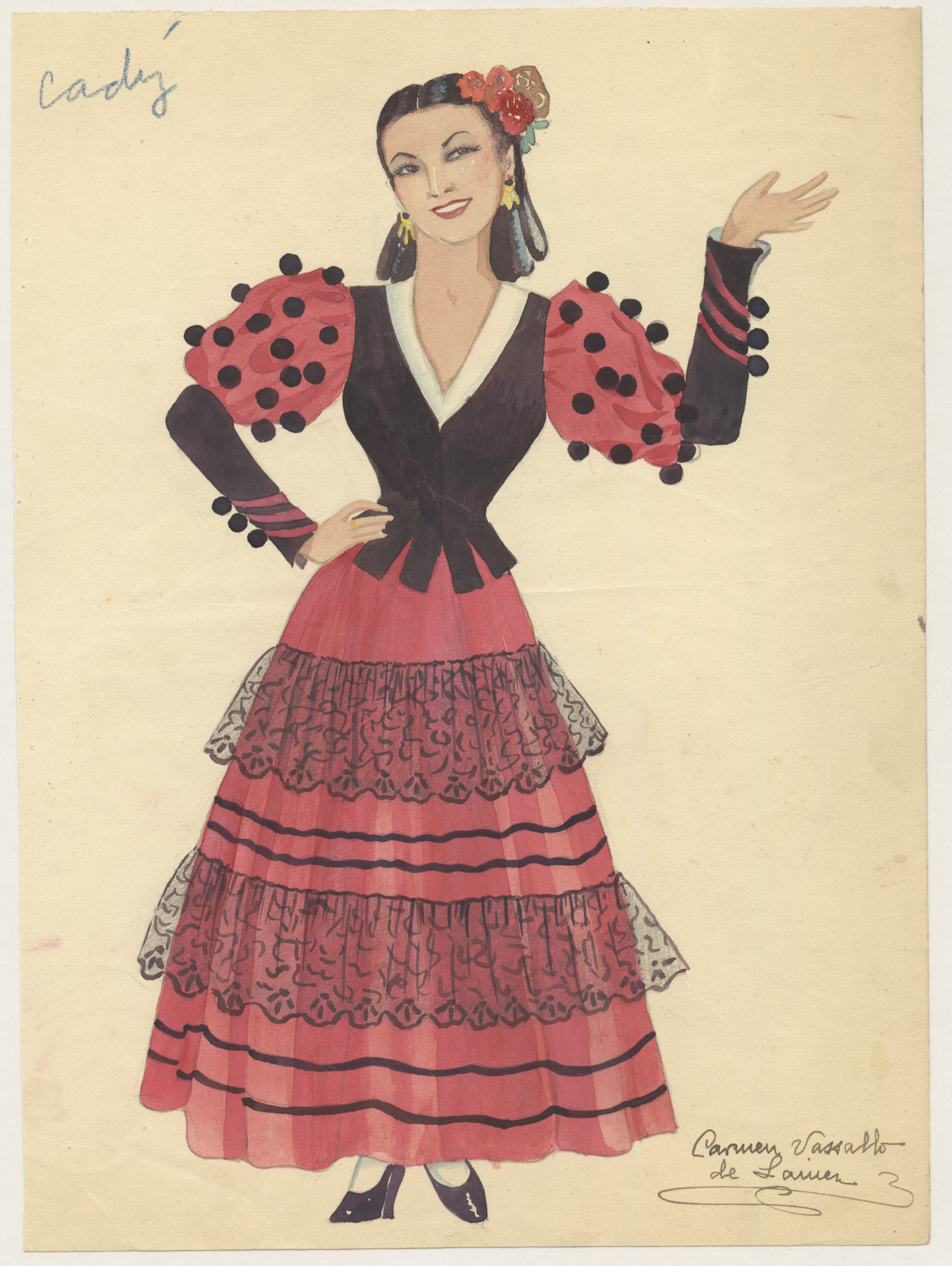 Dibujo a color sobre papel grueso tamaño folio, firmado y rubricado por Carmen Vassallo.