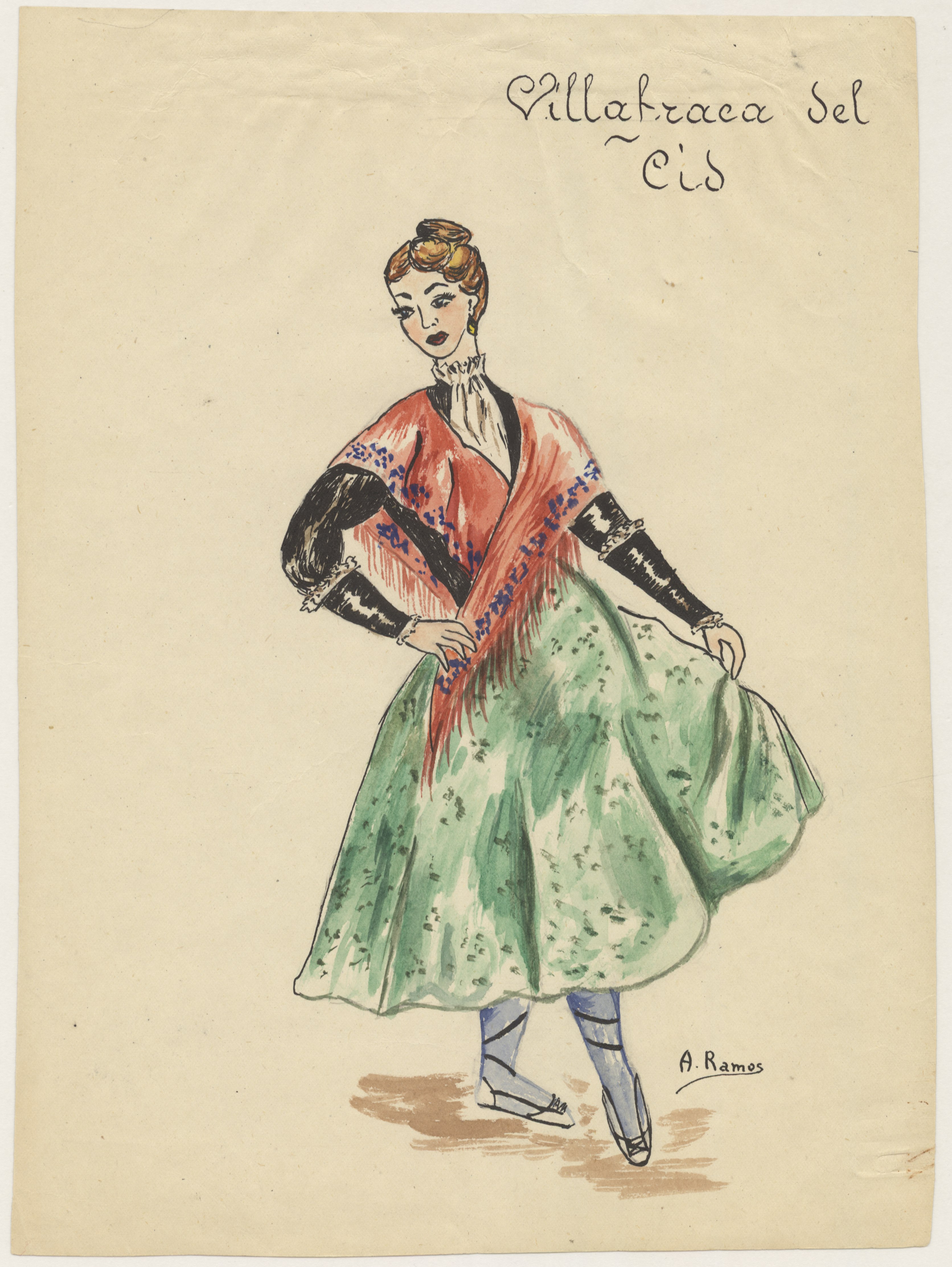 Dibujos a color realizados en papel grueso tamaño folio firmados por A. Ramos.