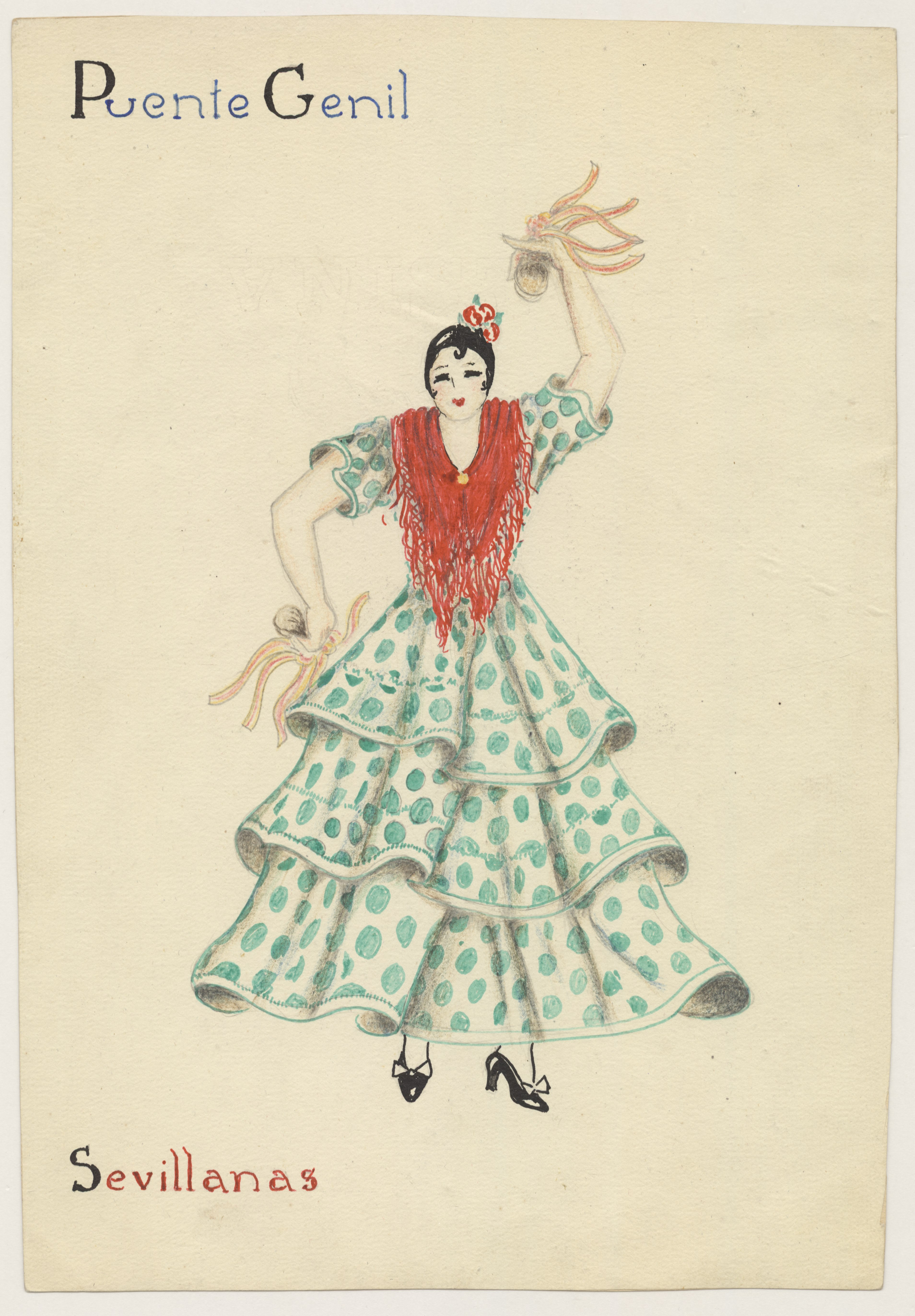 Dibujos de mujer vestida con trajes típicos de Puente Genil.
