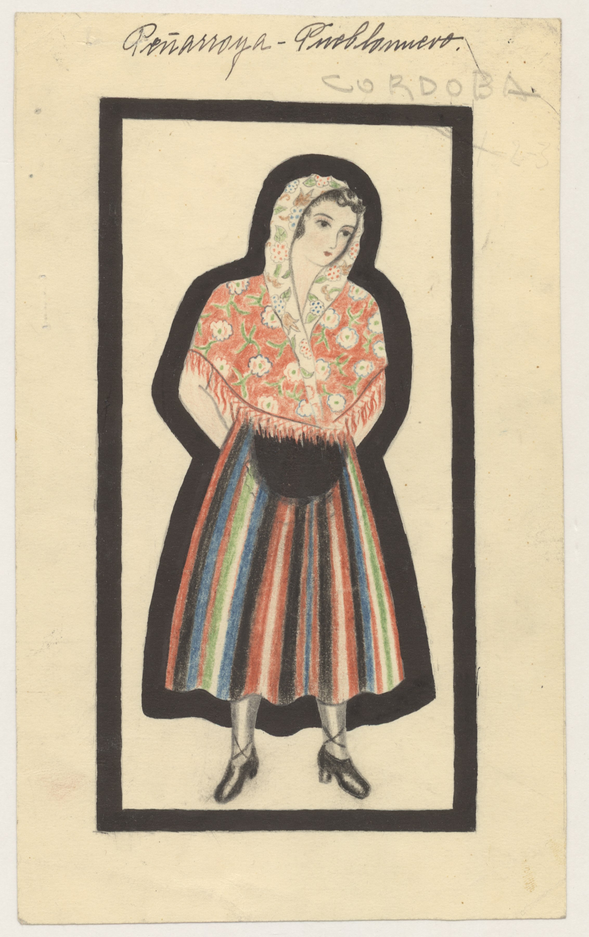 Dibujo de mujer vestida con el traje típico de Peñarroya-Pueblonuevo.