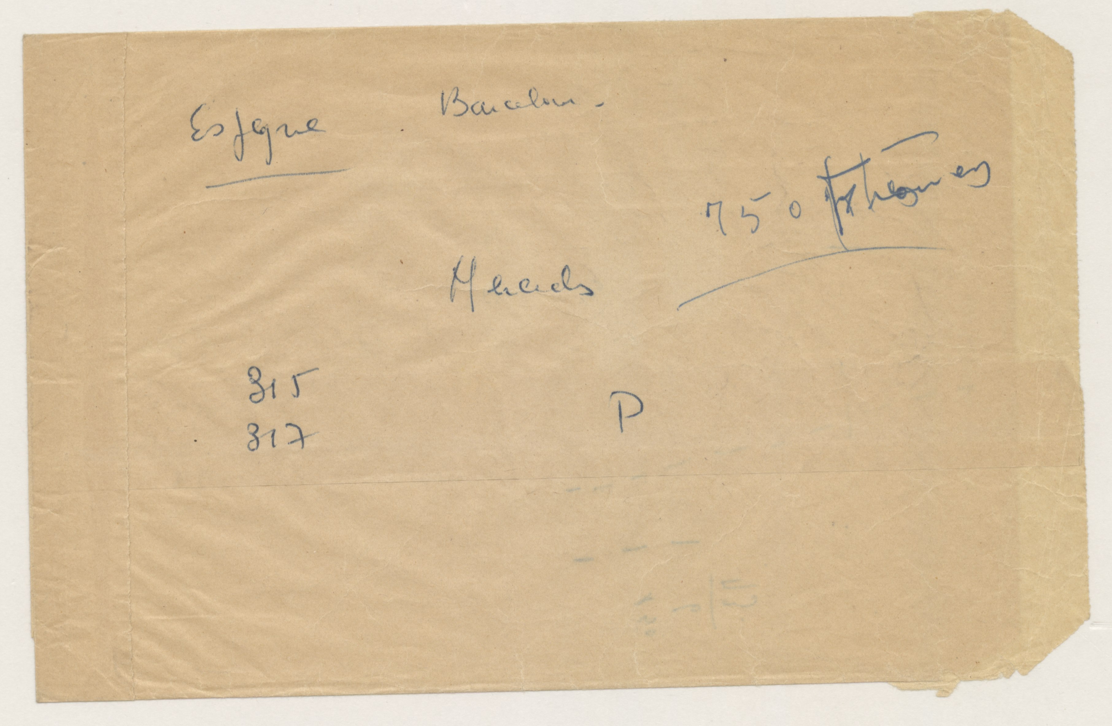 Radiotelegrama remitido, probablemente, desde la Regiduría Central de Cultura de la Sección Femenina a su Delegación en Las Palmas. Acompaña un sobre vacío con algunas anotaciones manuscritas sin relación con el texto principal.