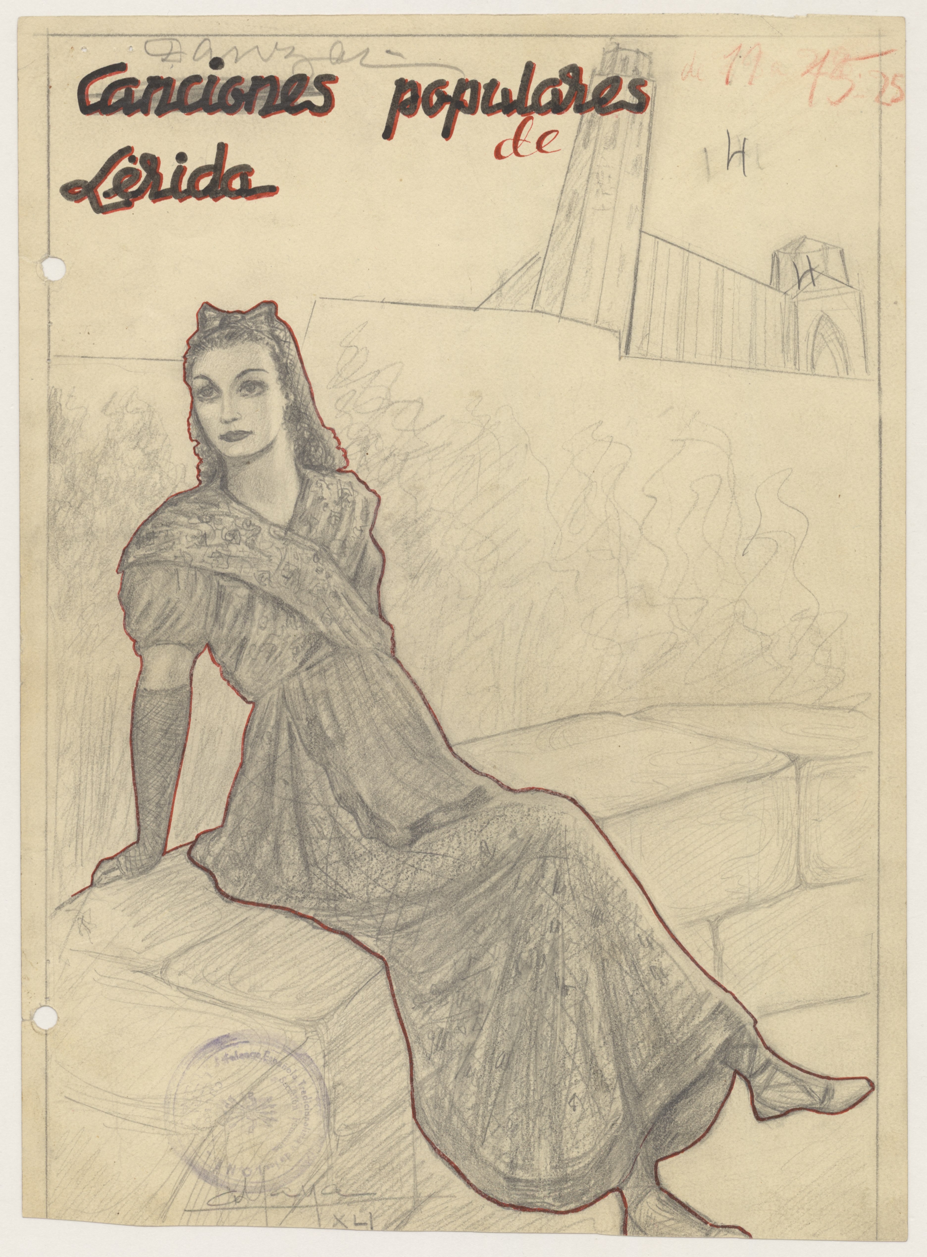 Dibujo de mujer vestida con el traje típico regional.