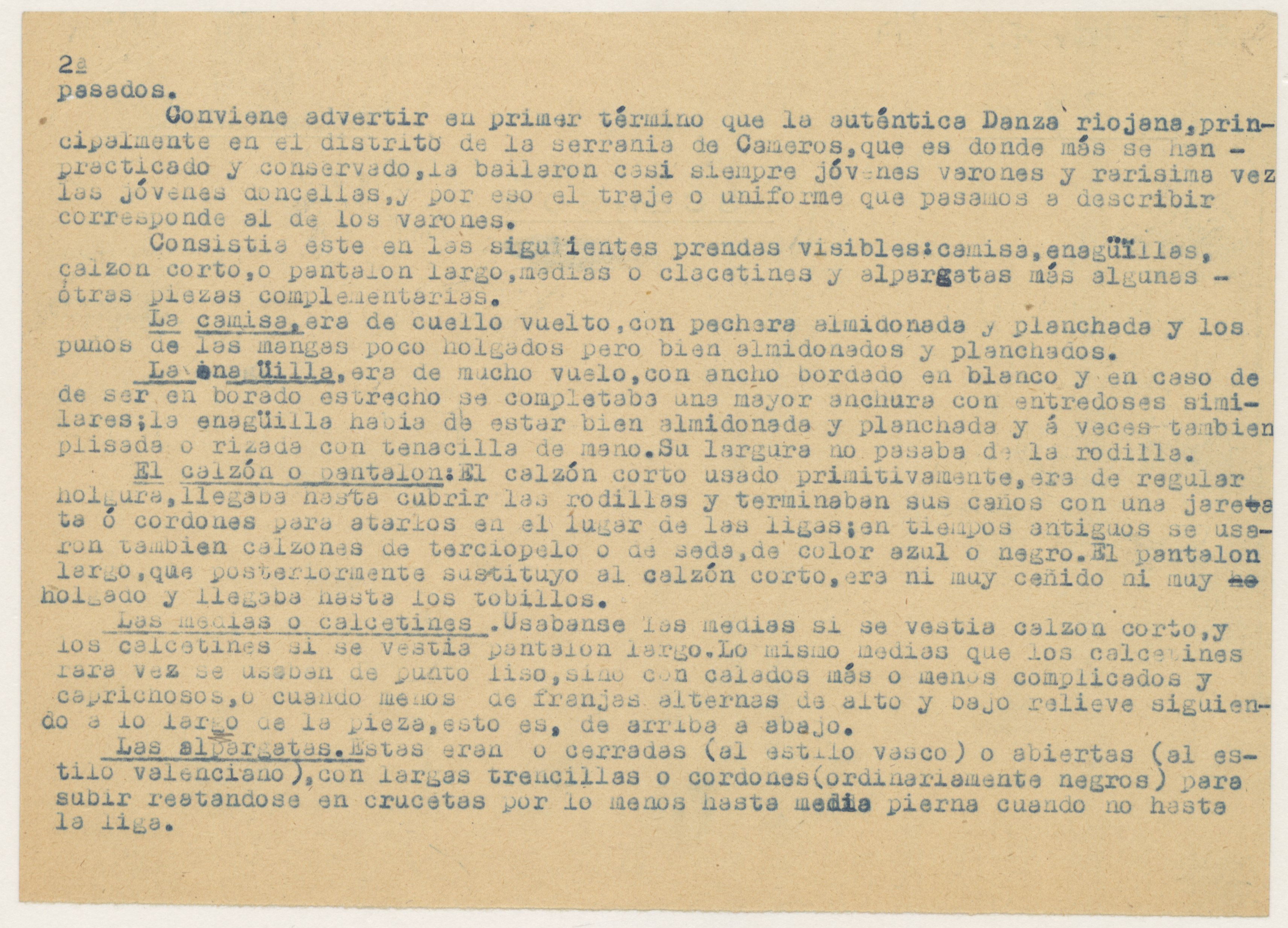 Infome sobre la danza en La Rioja titulado Memoria histórica descriptiva del traje usado por los danzadores