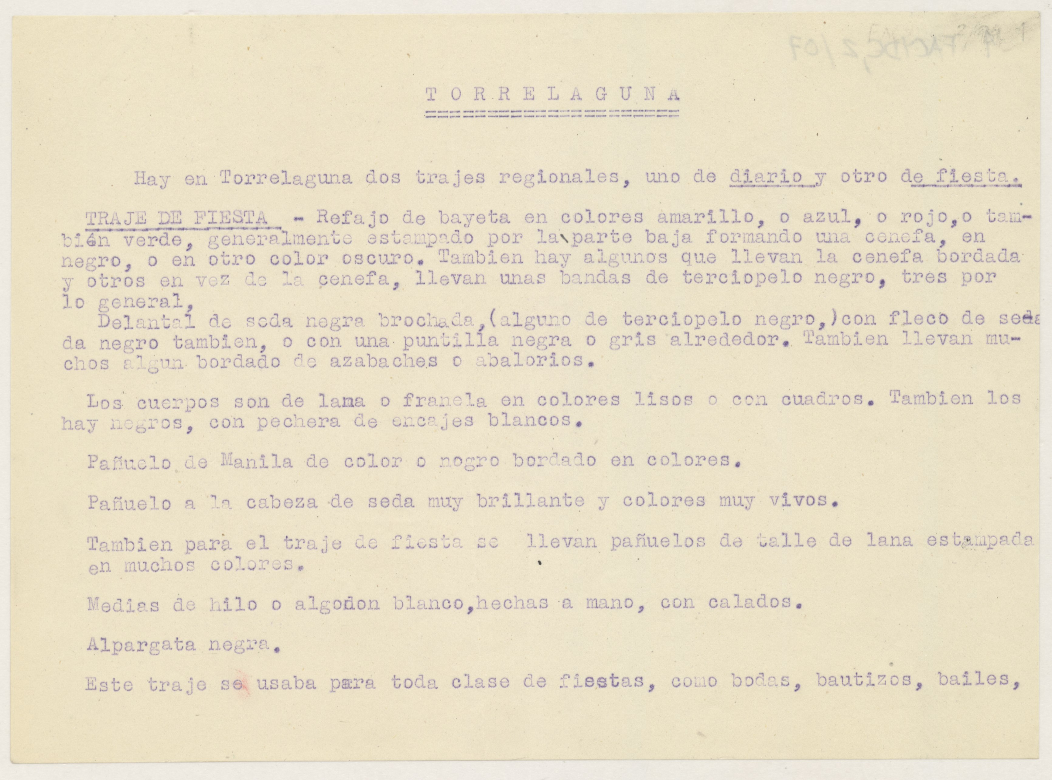 Informe sobre los trajes típicos regionales de Torrelaguna.