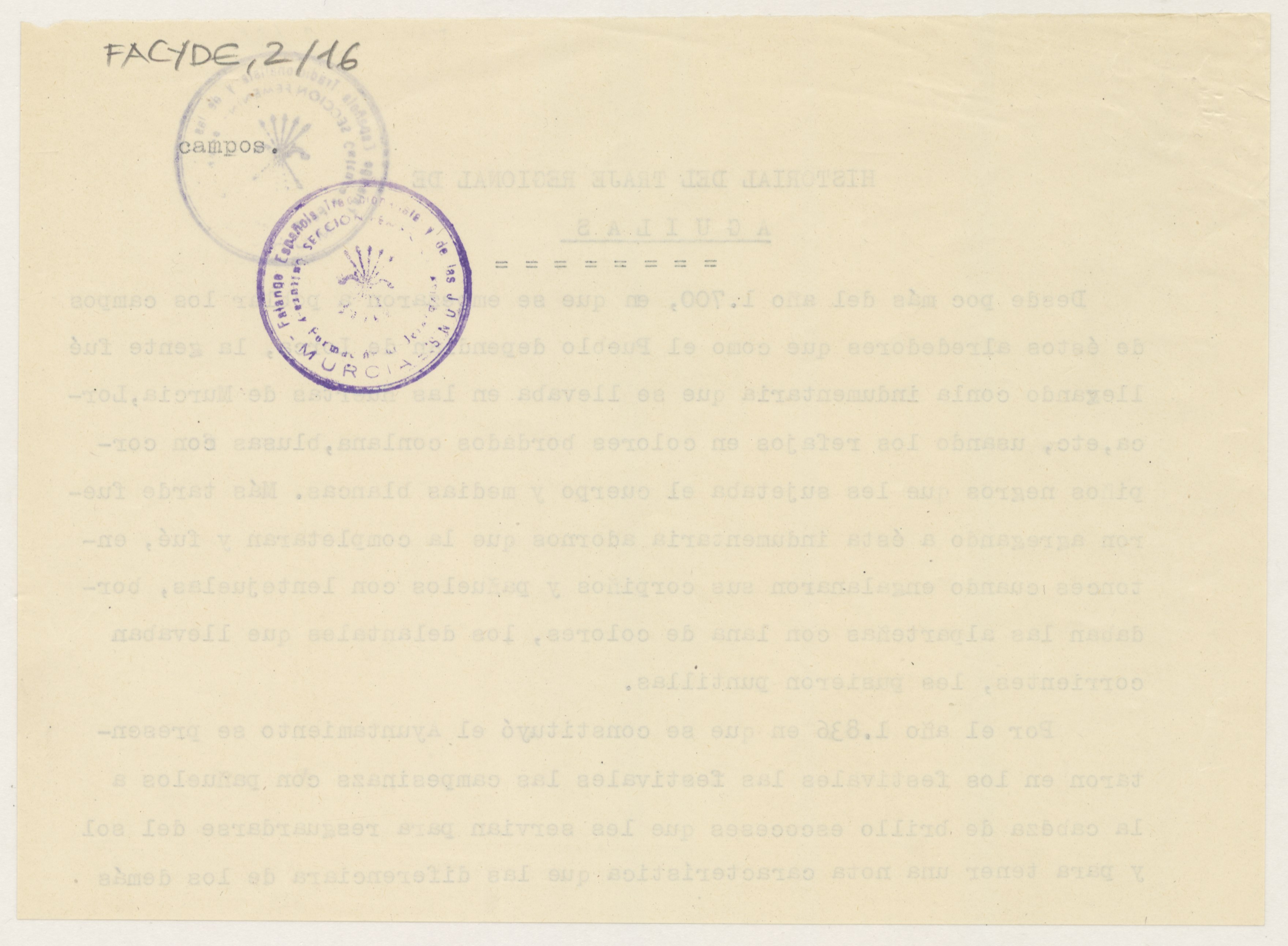 Informe sobre el historial del traje regional femenino de Águilas.