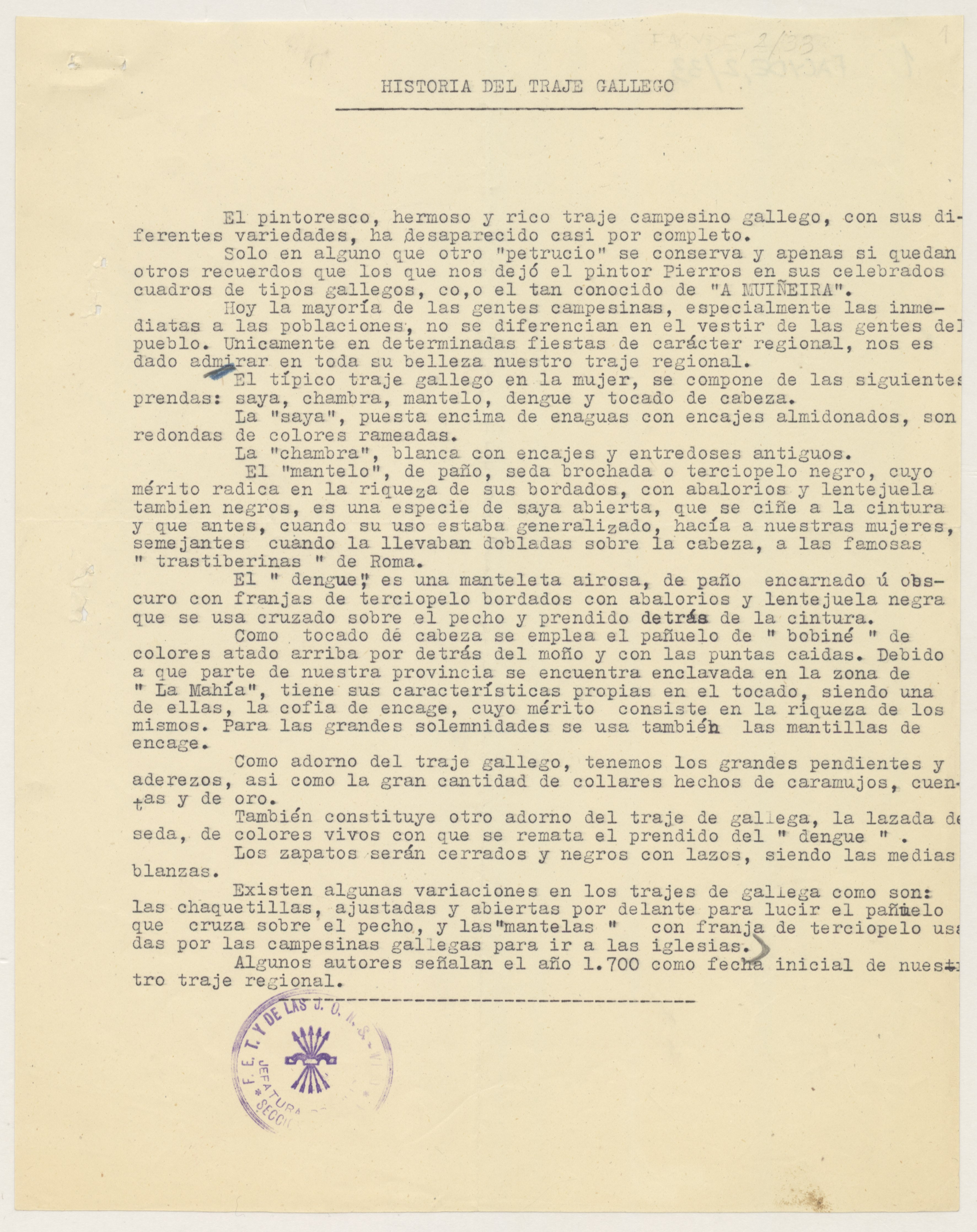 Informe sobre historial del traje gallego.