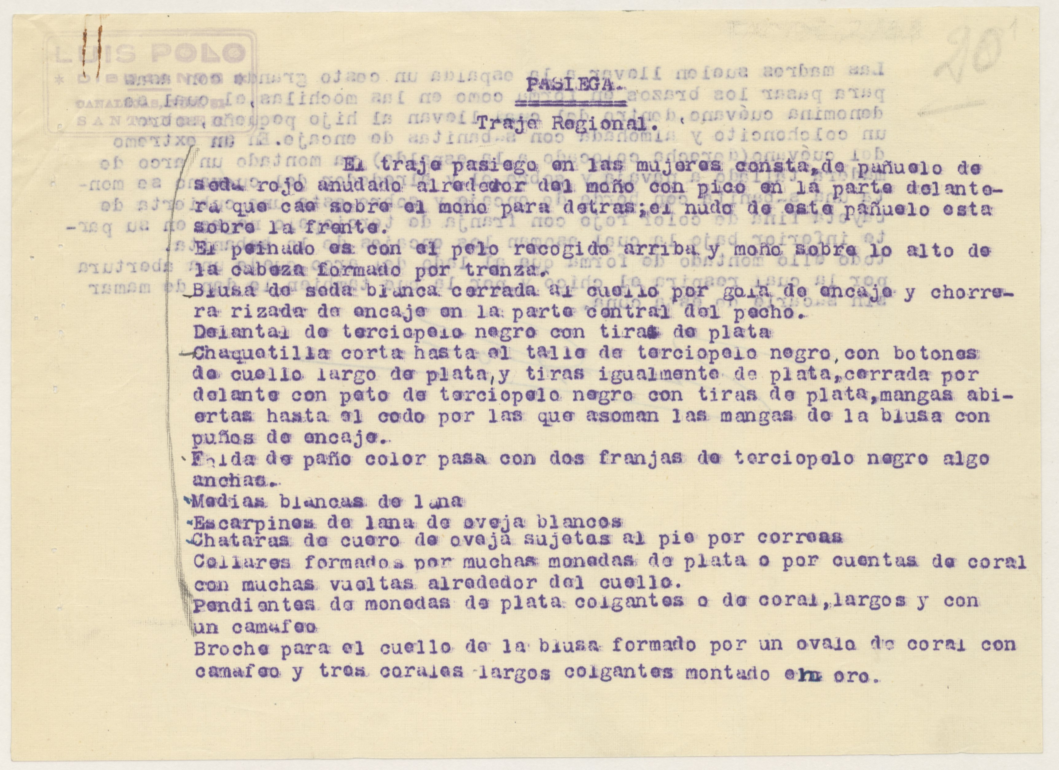 Informe sobre trajes regionales de Santander realizado por Luis Polo.
