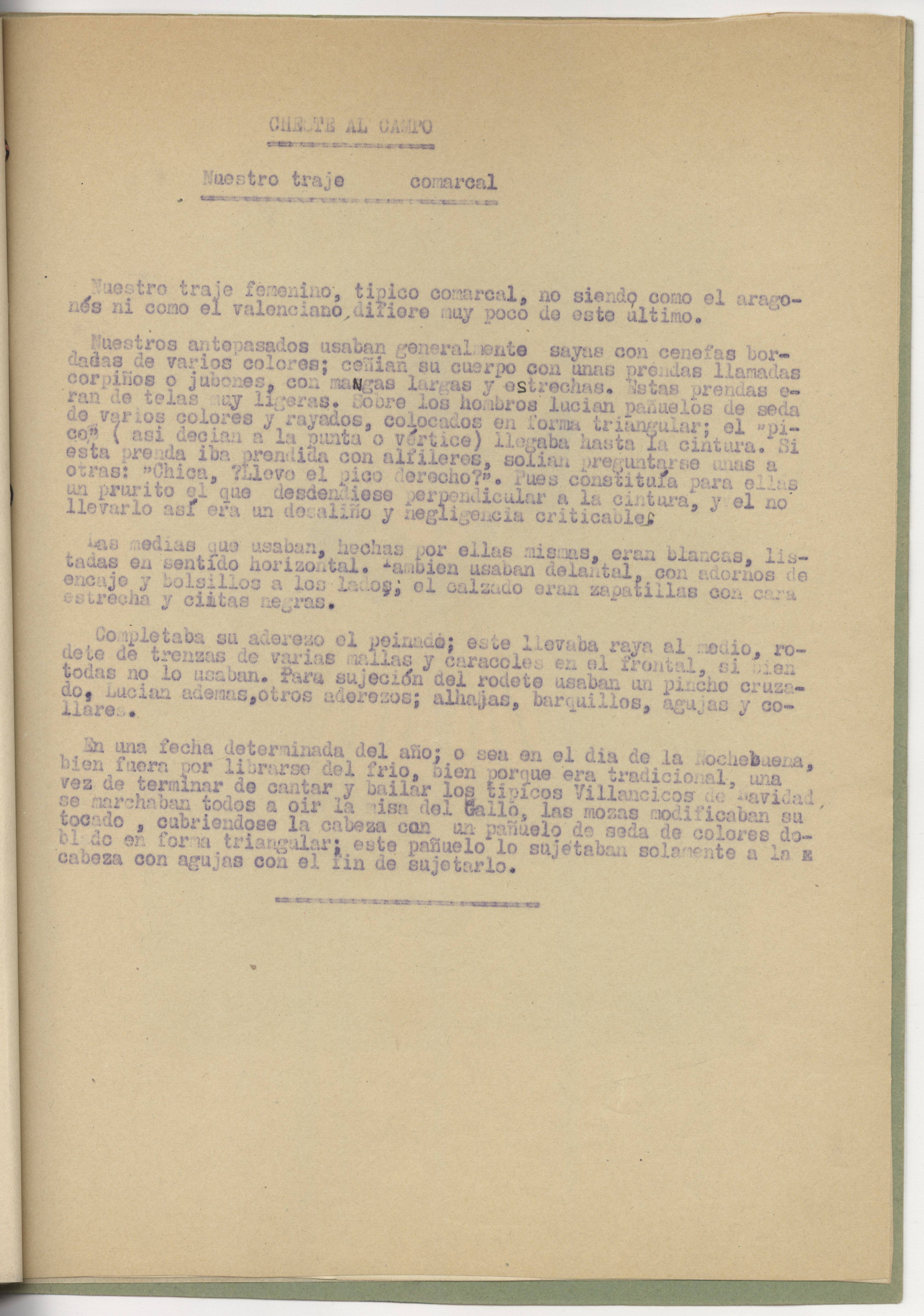 Cuadernillo de informes y dibujos sobre el traje típico de Cheste al Campo.