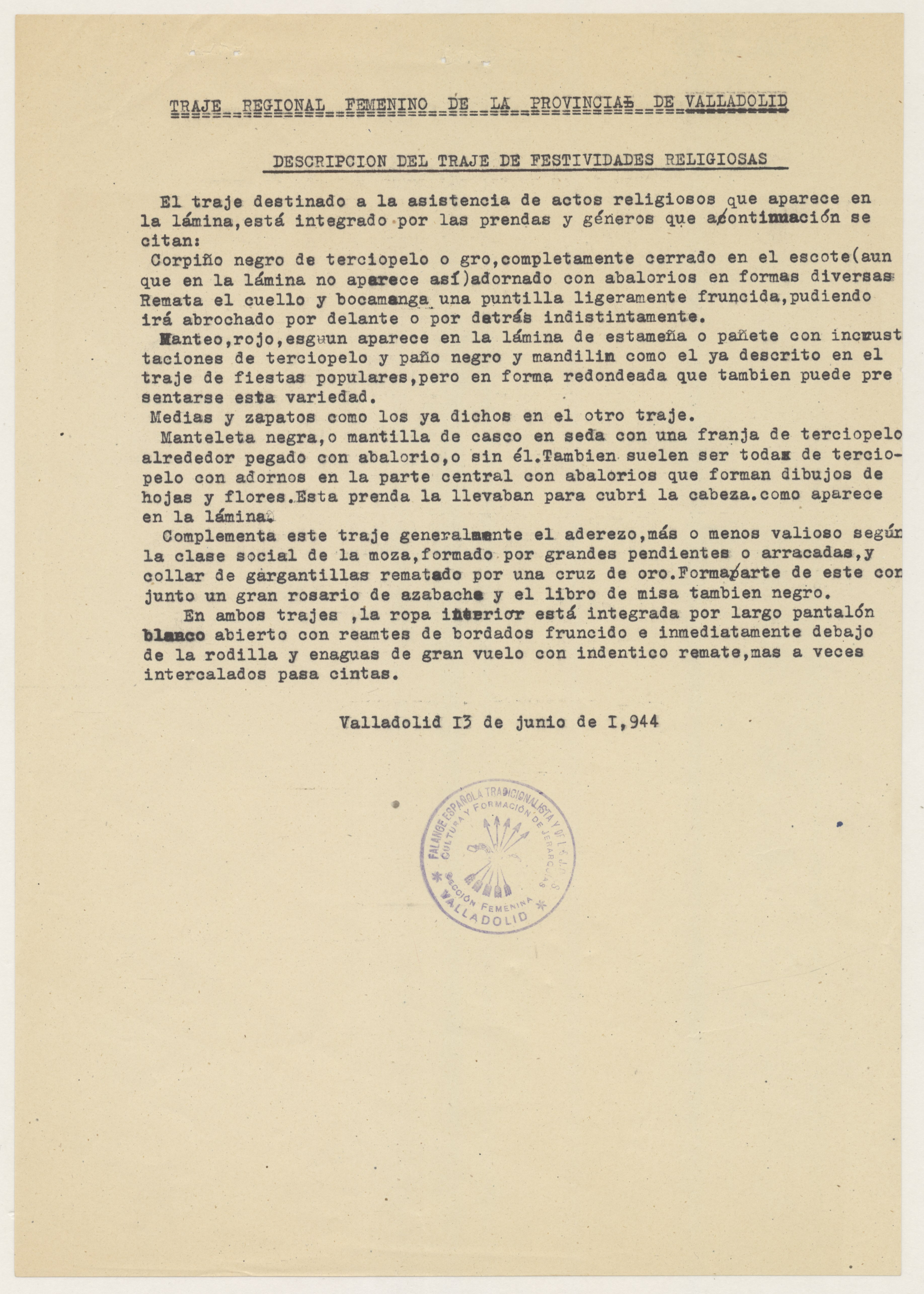 Informe sobre el traje típico de festividades religiosas de Valladolid.