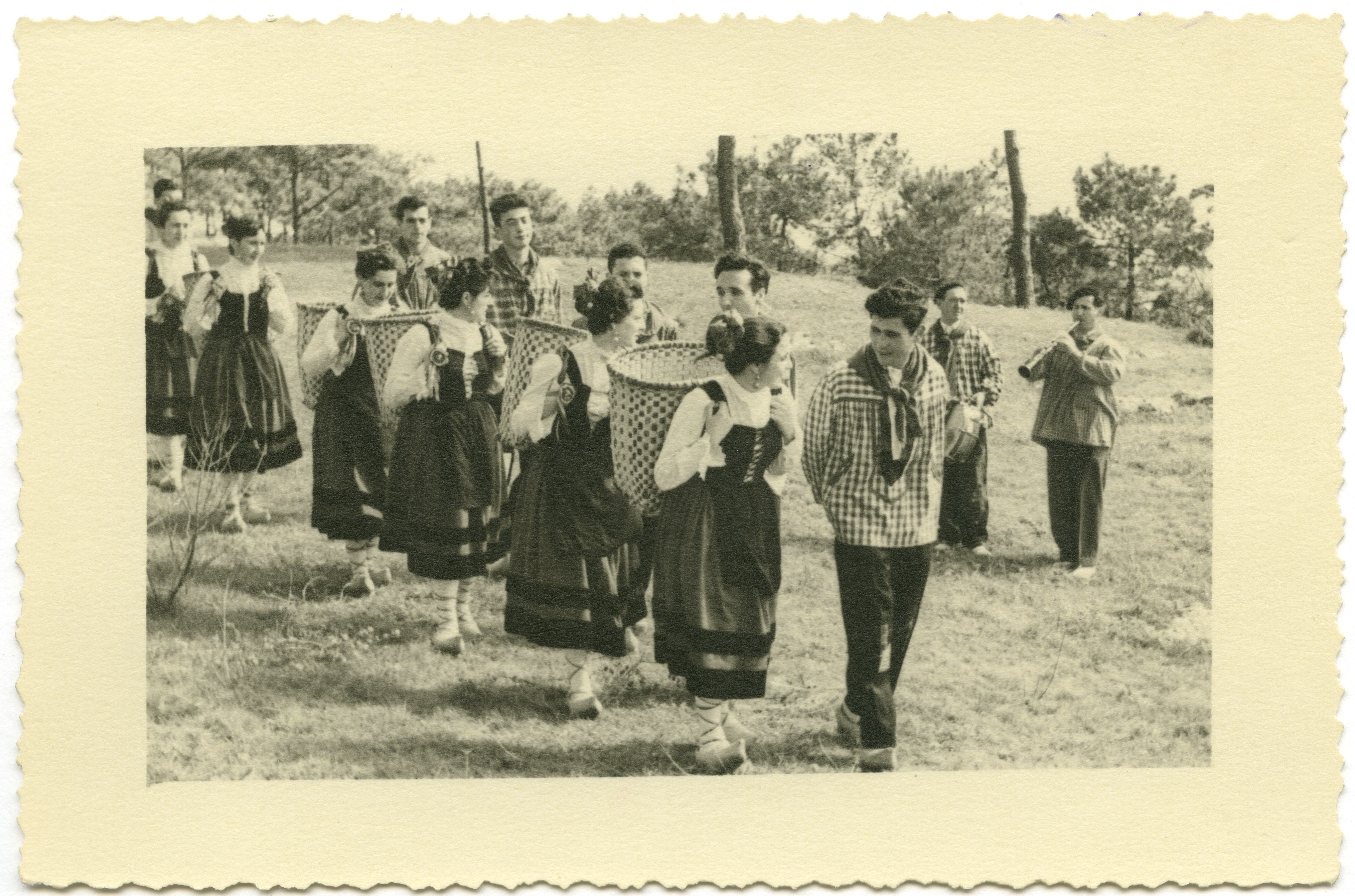 Fotografías de grupo de danzantes vestidos con el traje típico de Santander.