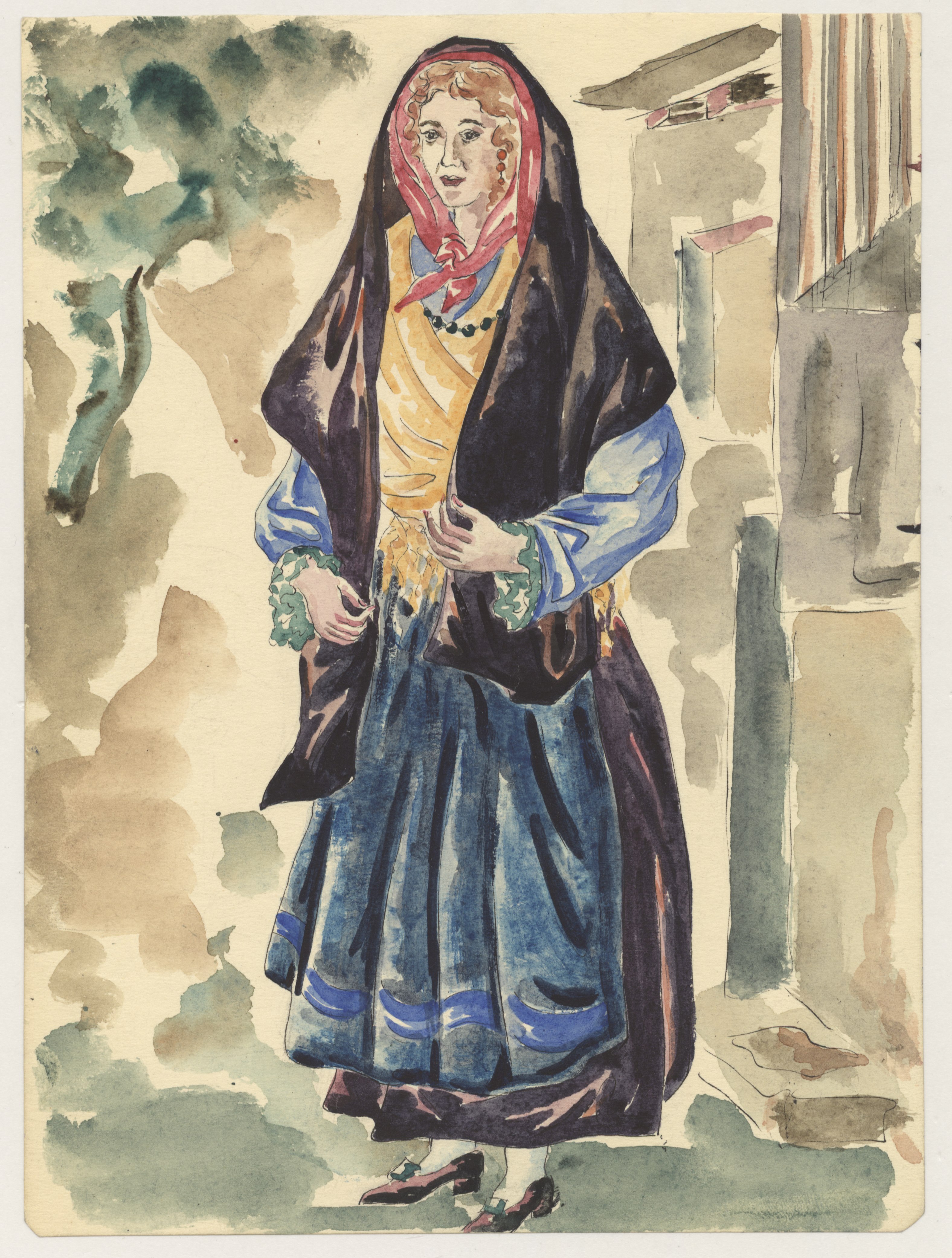 Dibujo del traje típico de mujer de Ponferrada.