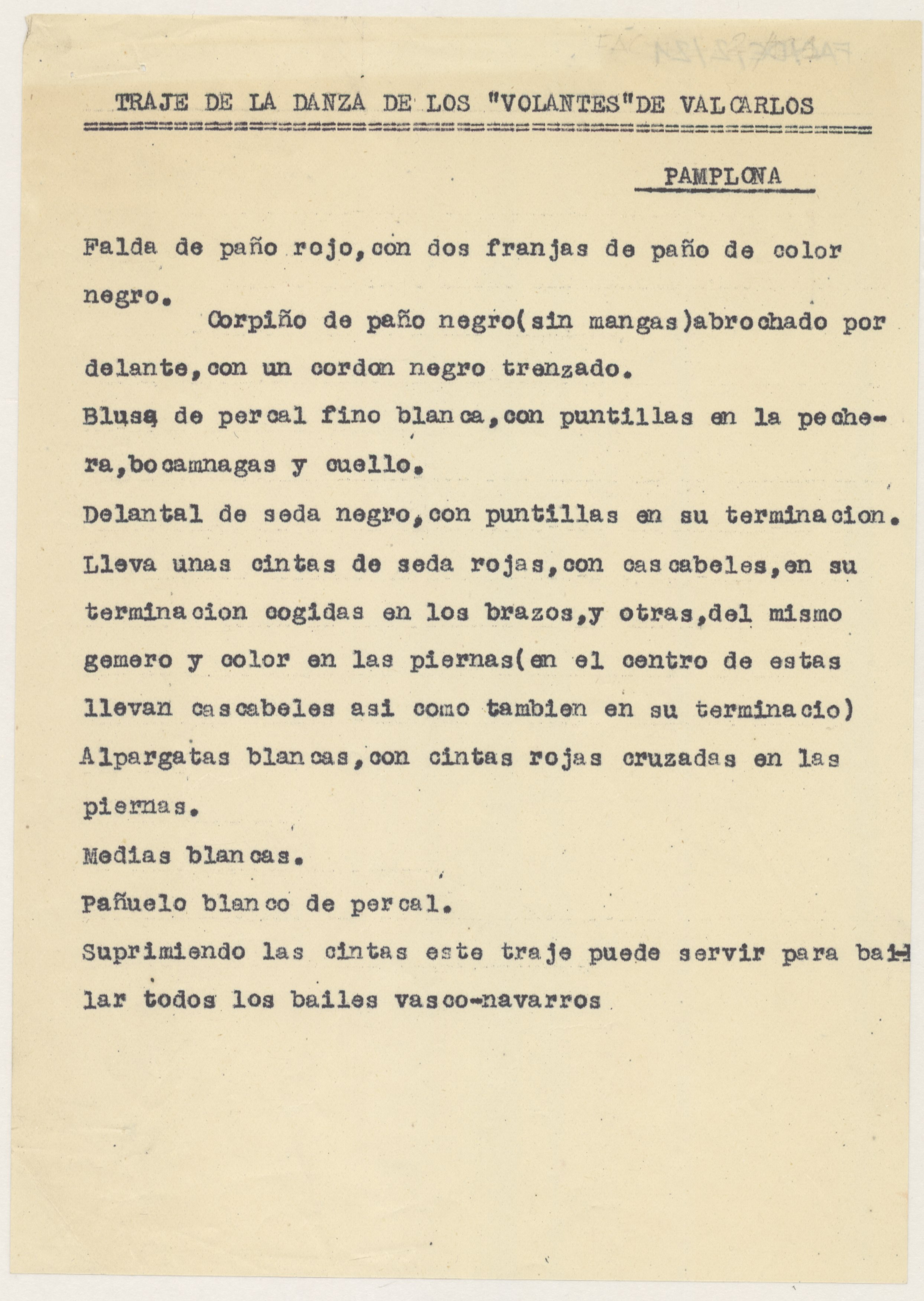 Informe sobre el traje de la Danza de los volantes de Valcarlos.