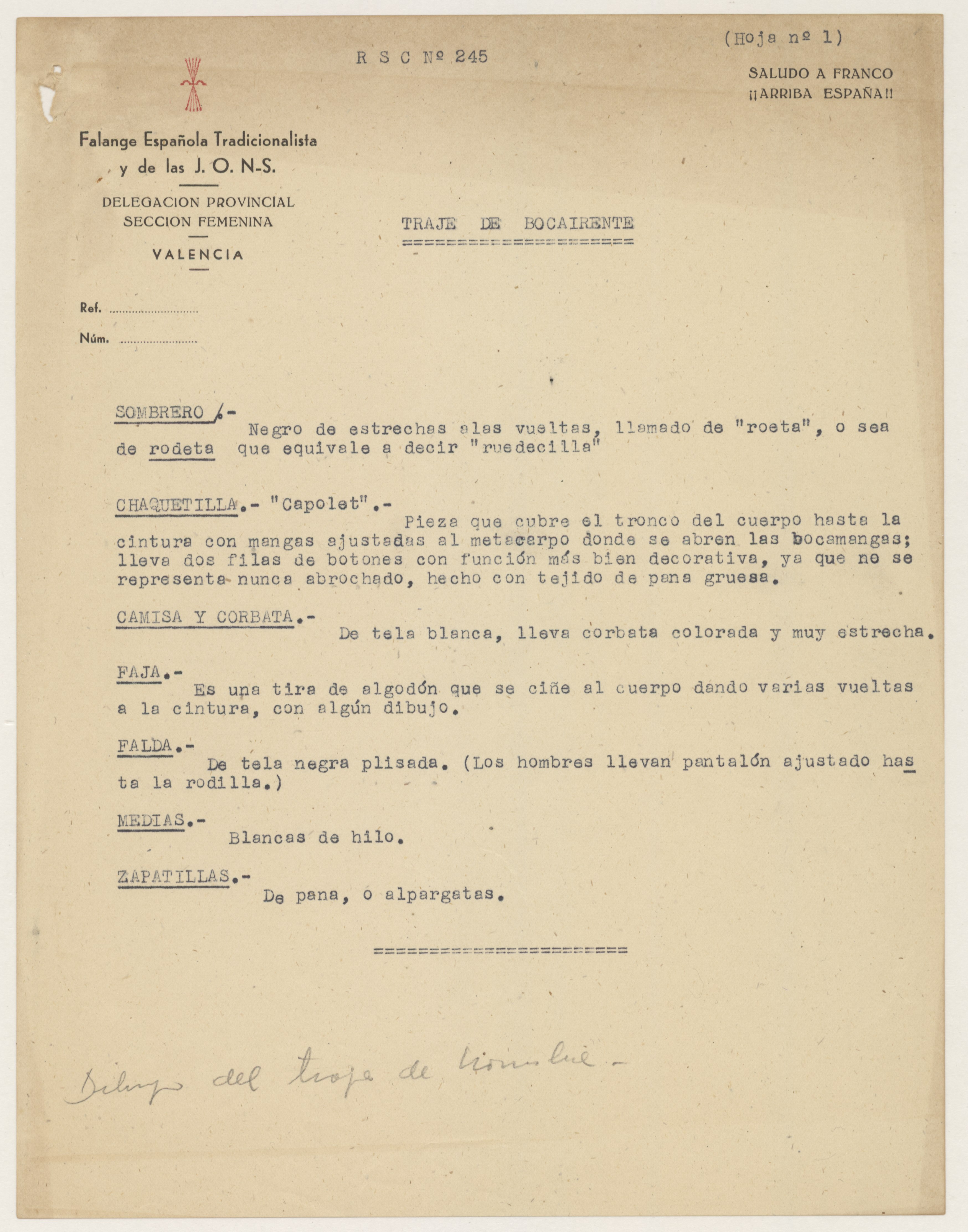 Informe sobre el traje típico de Bocairente y el de labrador de La Ribera.