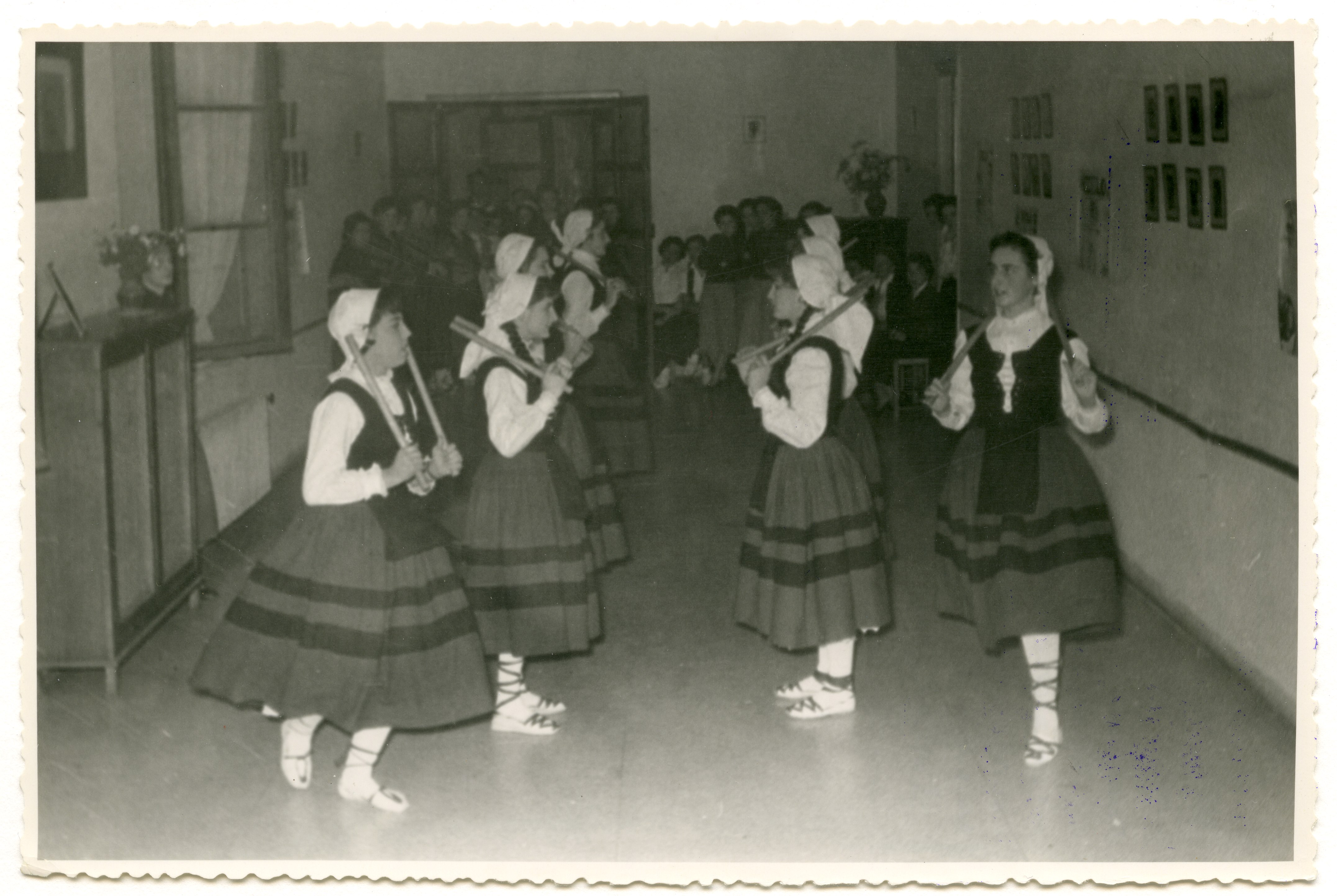Fotografías de coro y grupo de danzantes vestidos con el traje típico de Vizcaya.