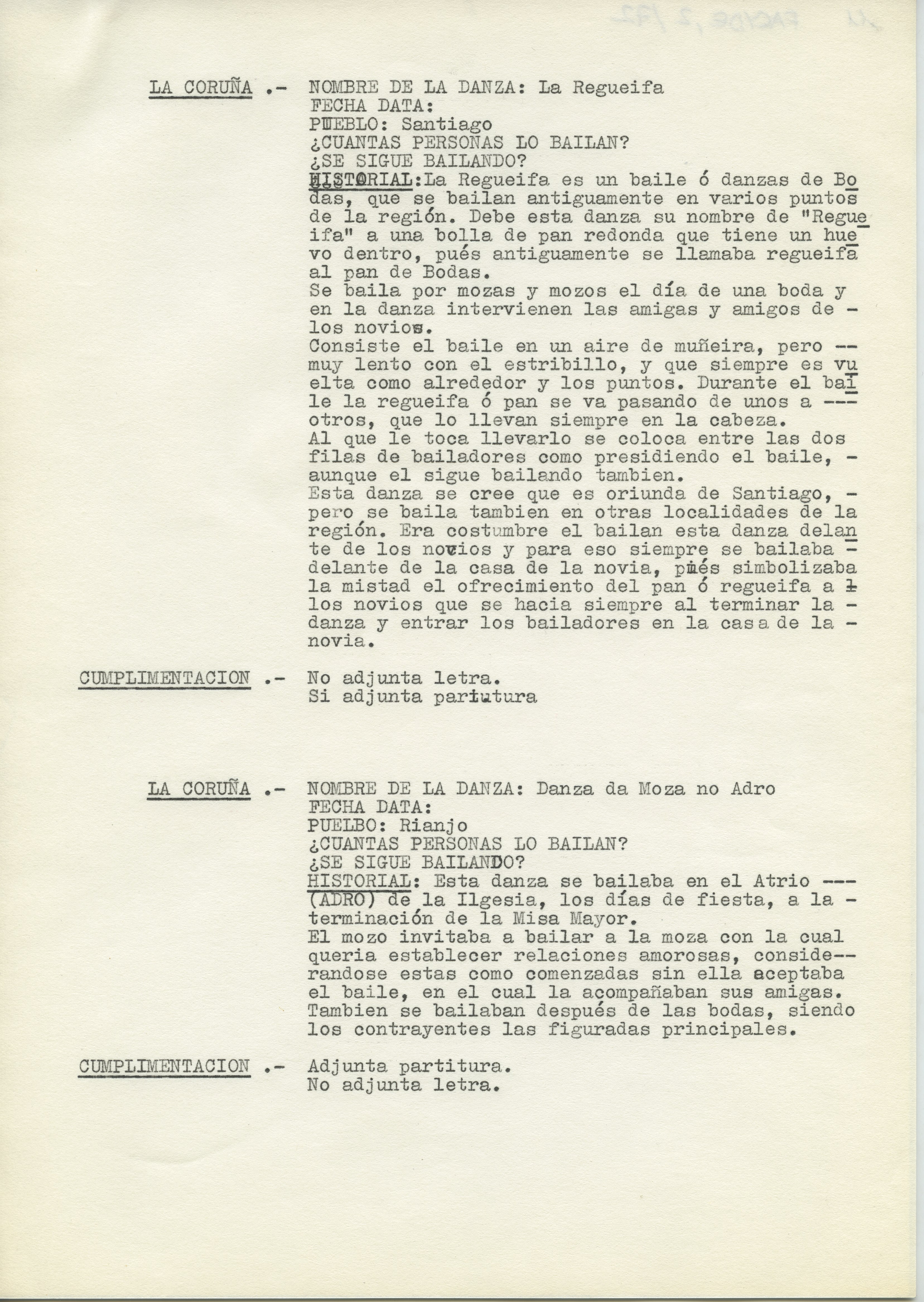 Informe titulado "Danzas de boda".