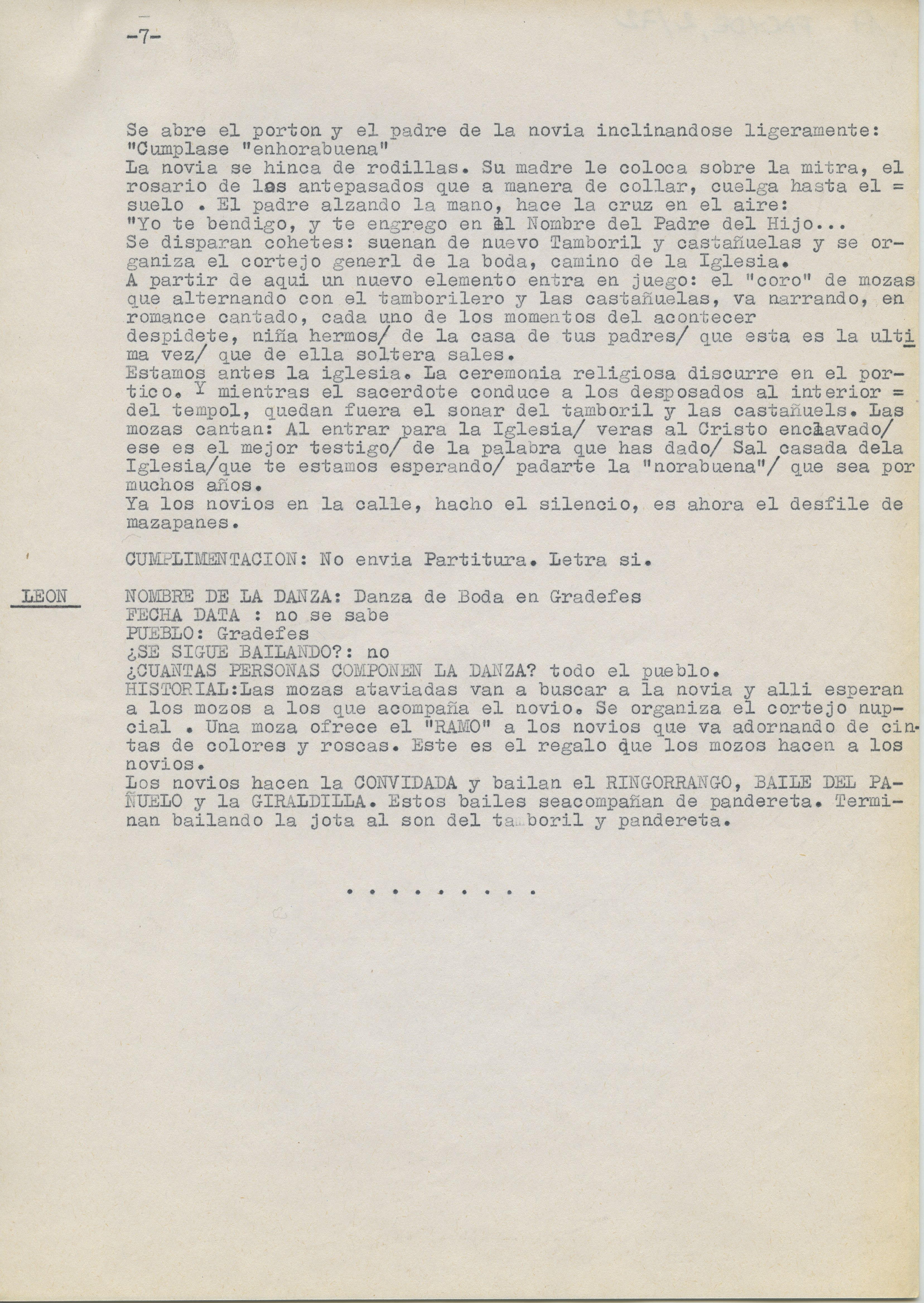 Informe titulado "Danzas de boda".